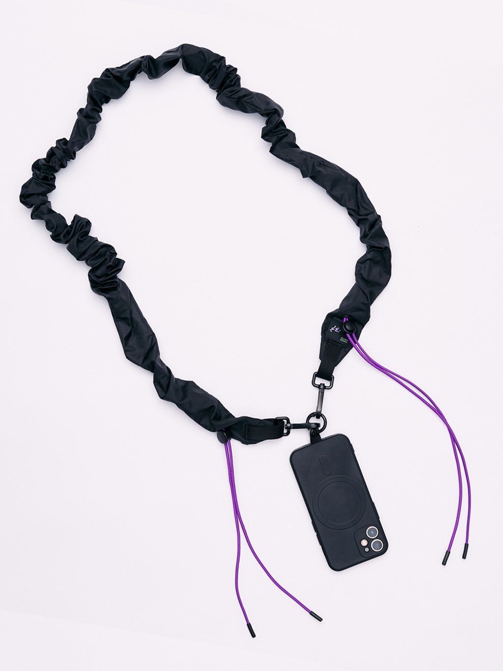 Scrunchie dlouhý popruh na mobil - černý/fialový